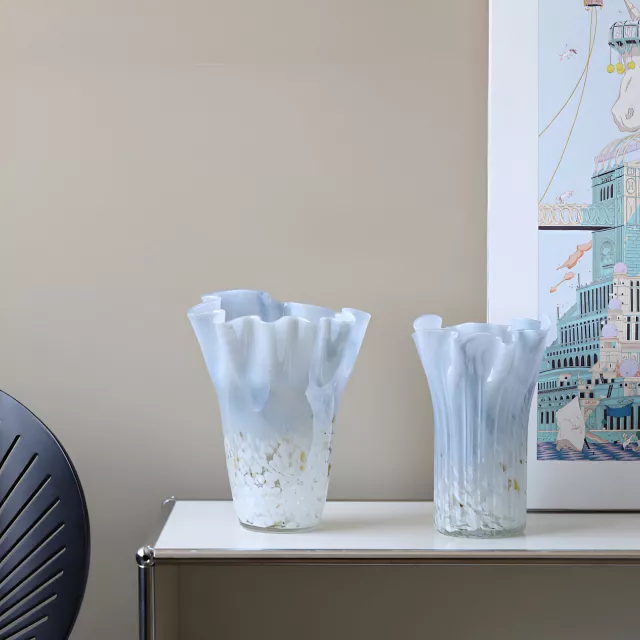 Bring a touch of elegance and charm to your home decor with this stunning Blue Gradient Polka Dot Glass Vase. Its beautiful blend of colors and unique pleated pattern make it the perfect addition to any room. Whether you’re looking for a stylish centerpiece or a functional vase for your flowers or hydroponic plants, this vase offers both beauty and versatility.