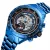 Step into a world of precision and prestige with this Luxury Blue Skeleton Automatic Watch for Men. Designed to captivate, this striking timepiece blends mechanical mastery with high-end style. Its skeleton dial showcases the intricate self-winding mechanism at work — a true spectacle for any watch enthusiast. The vivid blue stainless steel band and case create a commanding presence on the wrist, making it the perfect accessory for formal occasions, daily wear, or that special evening out.