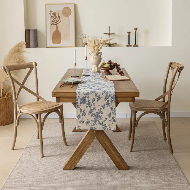 Pastoral Flower Table Runner, Cotton Linen Table Cover, Retro Vintage Kitchen Dining Table Decoration for Restaurant Home Party